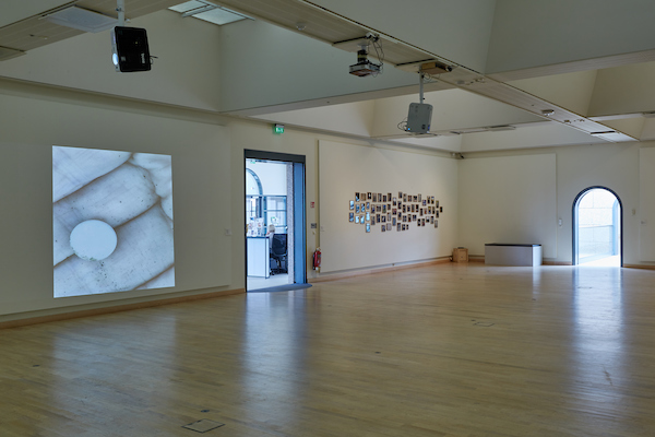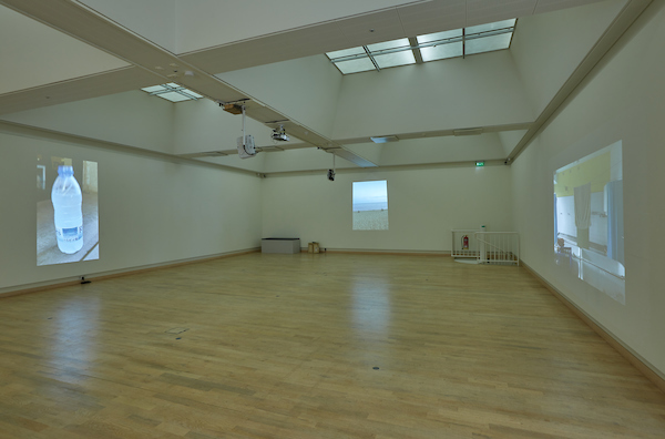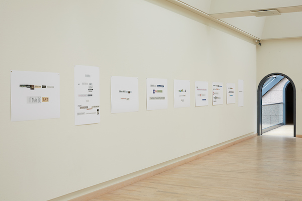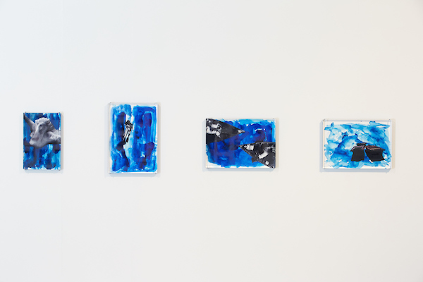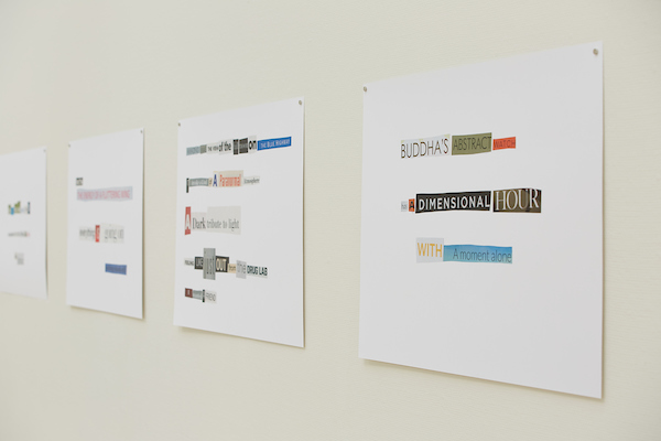 The exhibition consists of collage, text-collage, video, sound, photographs both framed and projected and a story of 4.356 words.