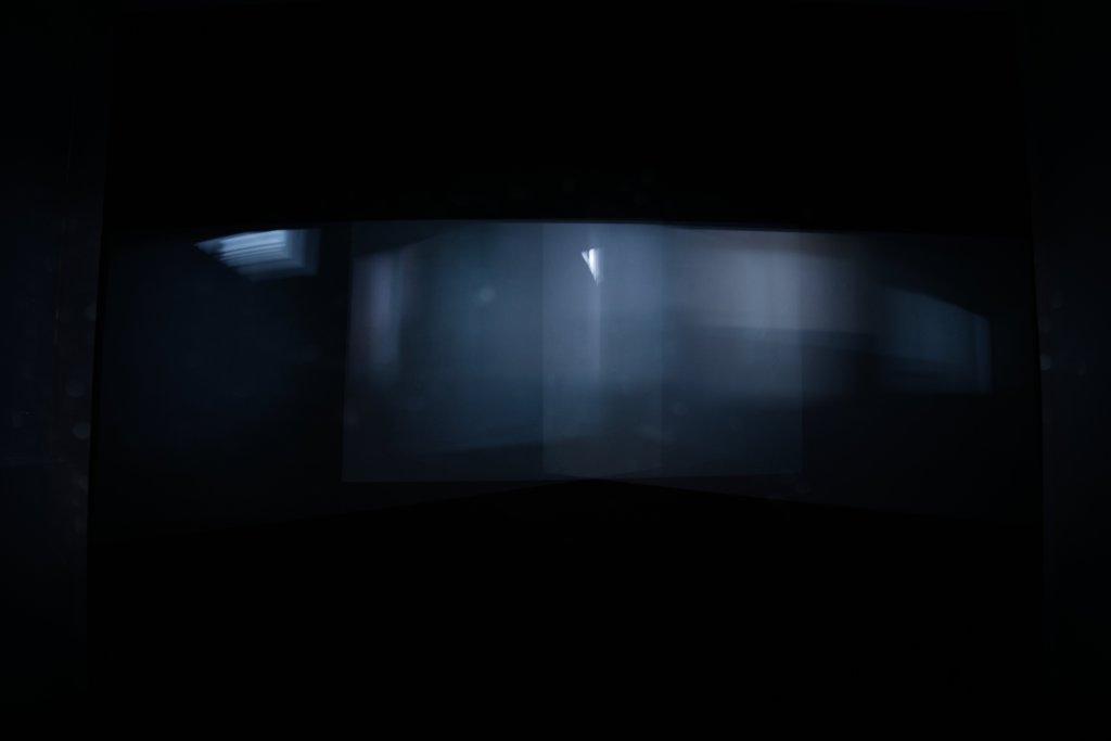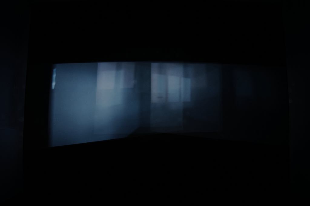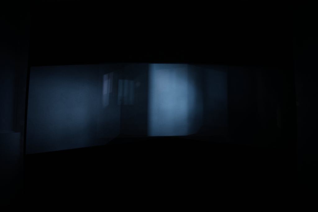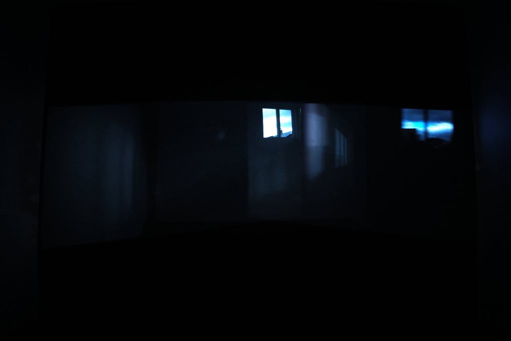 Moving images from three projectors are cast onto a black wall. Their overlap generates a continuously changing composite image that never repeats. The work unfolds slowly and calmly, creating a dark visual movement looping endlessly.