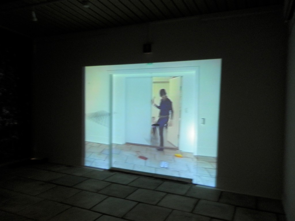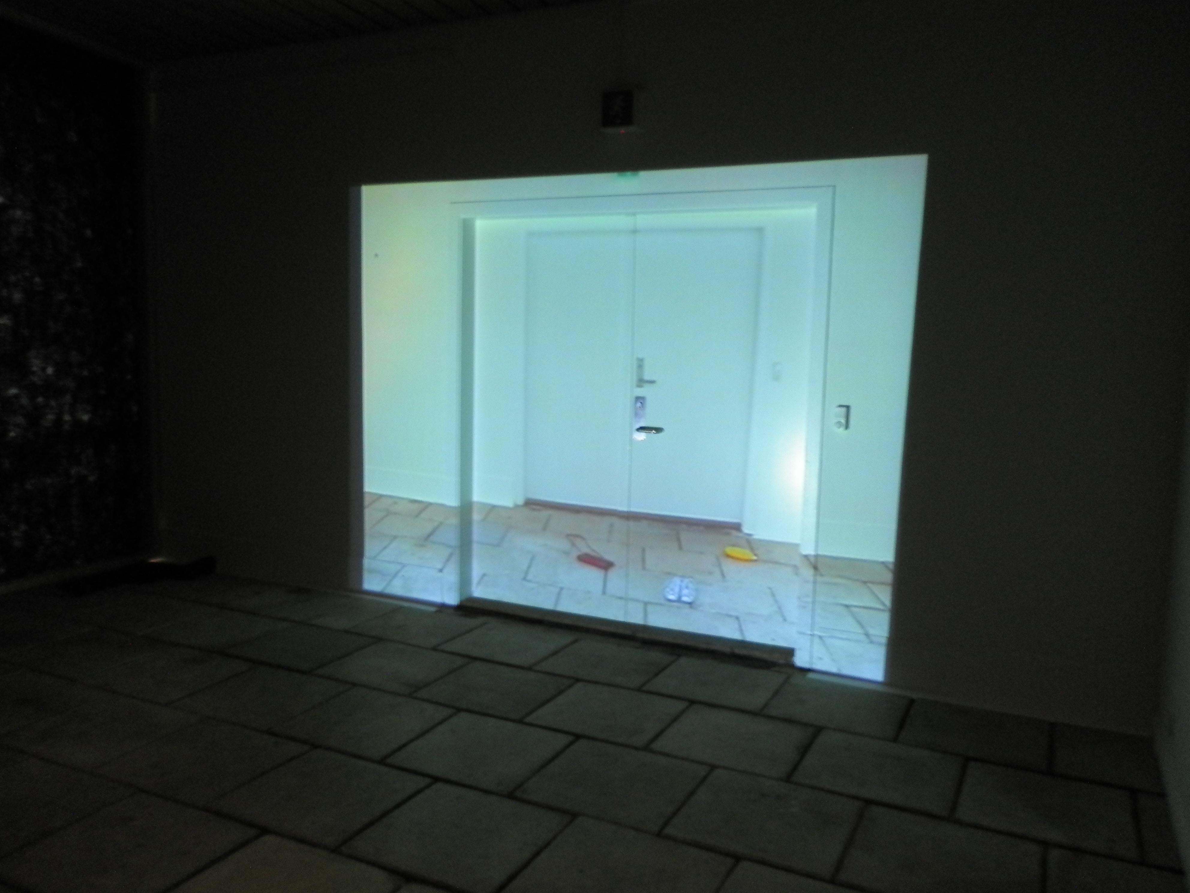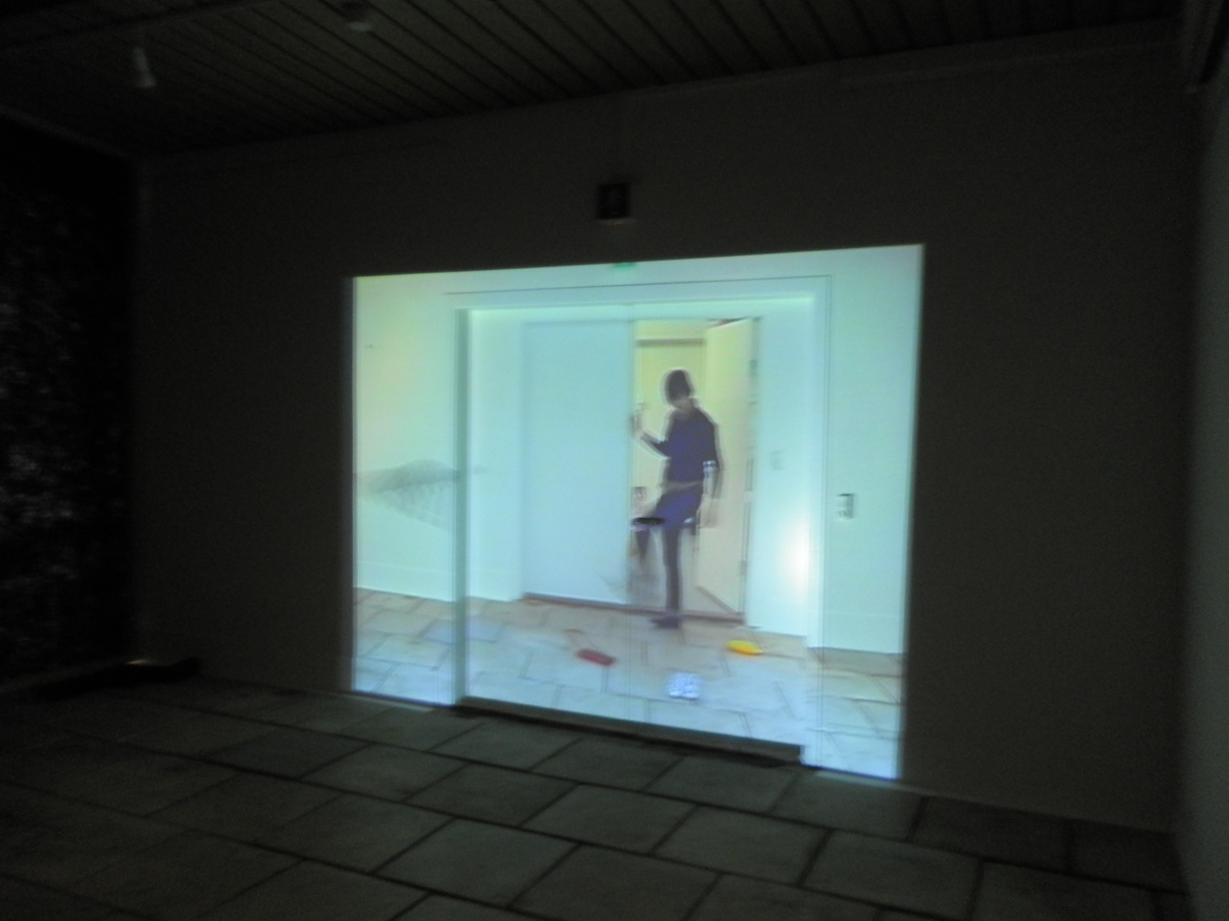 A site-specific video made at the museum during my stay in the Faroe Islands, projected onto the door of the exhibition space used for the work. Like the two earlier site-specific videos in which I appear, On-site (2002) and Felumynd (2001), it managed to trick viewers for a moment with visual illusions. They were unsure of what was really happening, whether the figure was physically present in the space, and even whether the door itself was actually there.